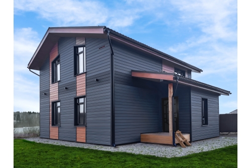 - При использовании покрытия Colority® Print, «ЭкоБрус GL» достигает максимального сходства с клееным брусом. Надежное скрытое сцепление панелей придает фасаду здания естественный вид.
